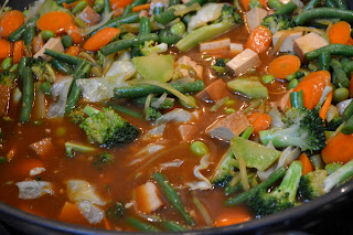 6. Continue cooking over medium heat until the sauce thickens and the vegetables are cooked through.