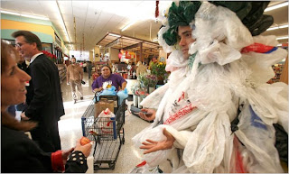 Andy Keller, inventor and president of ChicoBag in 500 plastic bags.