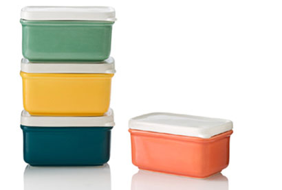 4. Ceramic: At work I am not allowed to have glass containers (glass is strictly forbidden around pools because of the dangers of bare feet and broken glass) so I bought two ceramic containers that I could bring food to heat up in. The only downside is that if you use them for food storage in the fridge you cannot see what is inside of them (in my house it turns into a stalemate of dares for someone to open it up and see how gross it is inside).