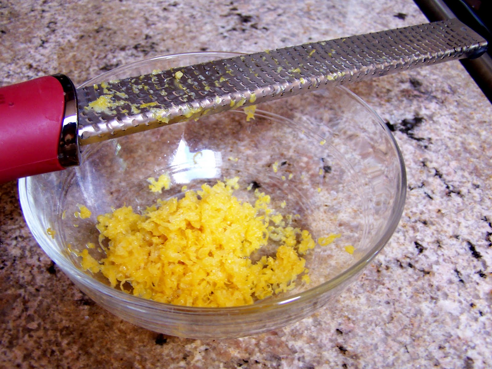 I like to use a fine greater to zest lemons. It is quick, efficient, and it gives small pieces so you do not end up with long, stringy pieces of zest.