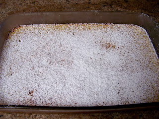 10. Put your batter in the prepared dish and cover with the topping. You are supposed to be able to shake it on, but because ours was so moist we had to drop it on (sorry it looks so gross. I promise it still tasted good).