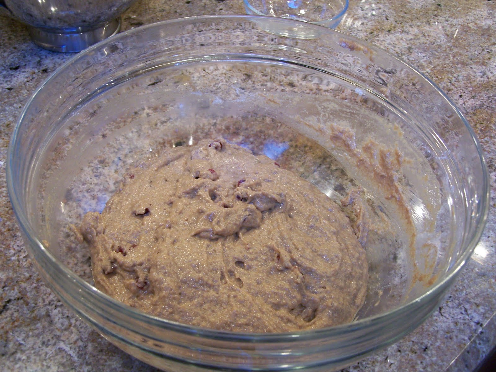 9. Fold the berries and the peaches into the batter. (We used one peach, about half of a clam-shell of black berries, and a whole clam-shell of blueberries. It was an alright amount of fruit, but it would not have been bad with a bit more.)